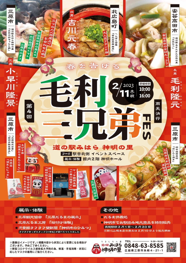 あったかくて美味しい特産品をたずさえて、毛利三兄弟ゆかりの三市町が神明の里に大集合!