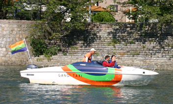 雁木タクシーは、この雁木を再び船着き場として,水の都ひろしまの6本の川を行き交う水上タクシーです。