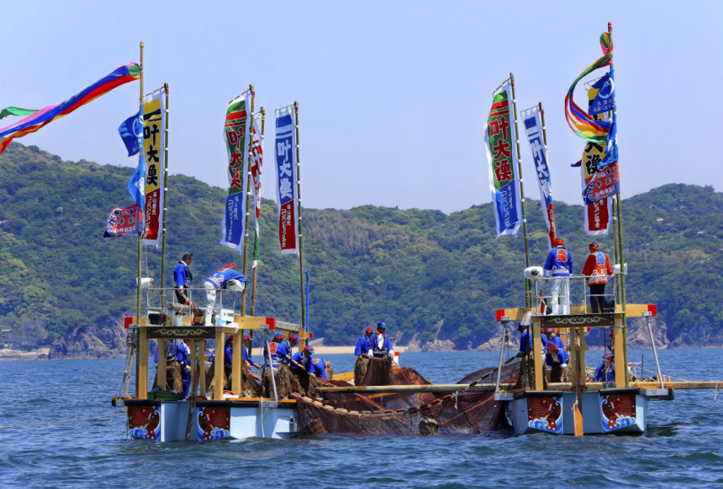 約390年前の江戸時代に始まったといわれる「鯛しばり網漁法」。