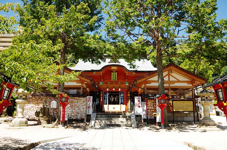 徳川家康公の御神霊を祀るため、時の広島藩主浅野光晟によって慶安元年(1648年)に建立されました。光晟の生母振姫(ふりひめ)が家康の第三女であったことから、東照宮の造営には特に熱心で、二葉山の麓に華麗な朱塗りの社殿を造営しました。また、家康の50年忌にあたる、寛文6年(1666年)以降、神輿渡御(みこしとぎょ)を伴う盛大な祭り、「通り御祭礼」が50年ごとに催され、中断期間があったものの、平成27年10月10日に行われた際は、多くの観光客で賑わいました。
