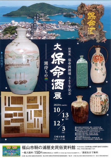 本展では、とりわけ「港町文化・鞆の結晶」のような保命酒徳利を数多く展示いたします。
