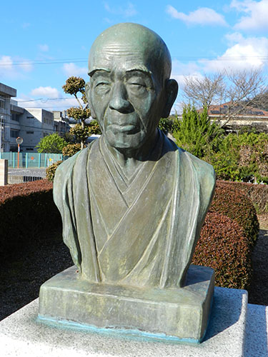 医師の富田又右衛門(長安)の二男として芦田郡下有地村(現福山市芦田町)に生まれました。1846年久三郎が18歳の時、阿波の人が残していった「織絹法」から、当時神辺や福山方面でつくられていた木綿織物に応用することを思いつき、工夫を重ね、備後絣という織物を誕生させました。また、貧しい農家には織機を貸して賃織りをするなど経営に改良工夫を加え、1880年頃は年間11万5000反と多額の生産をあげました。農家の副業化を図り、同業者の組合をつくるなど業界の先頭に立ち指導的な役割を果たしました。